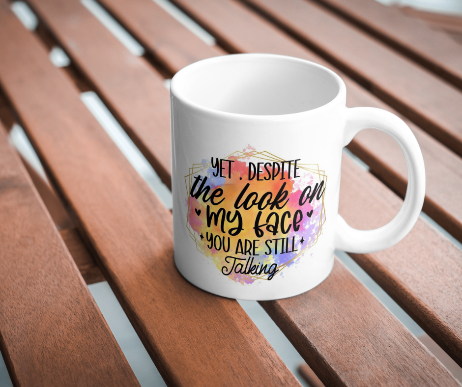“Yet Despite the Look on My Face You Are Still Talking” Coffee Mug